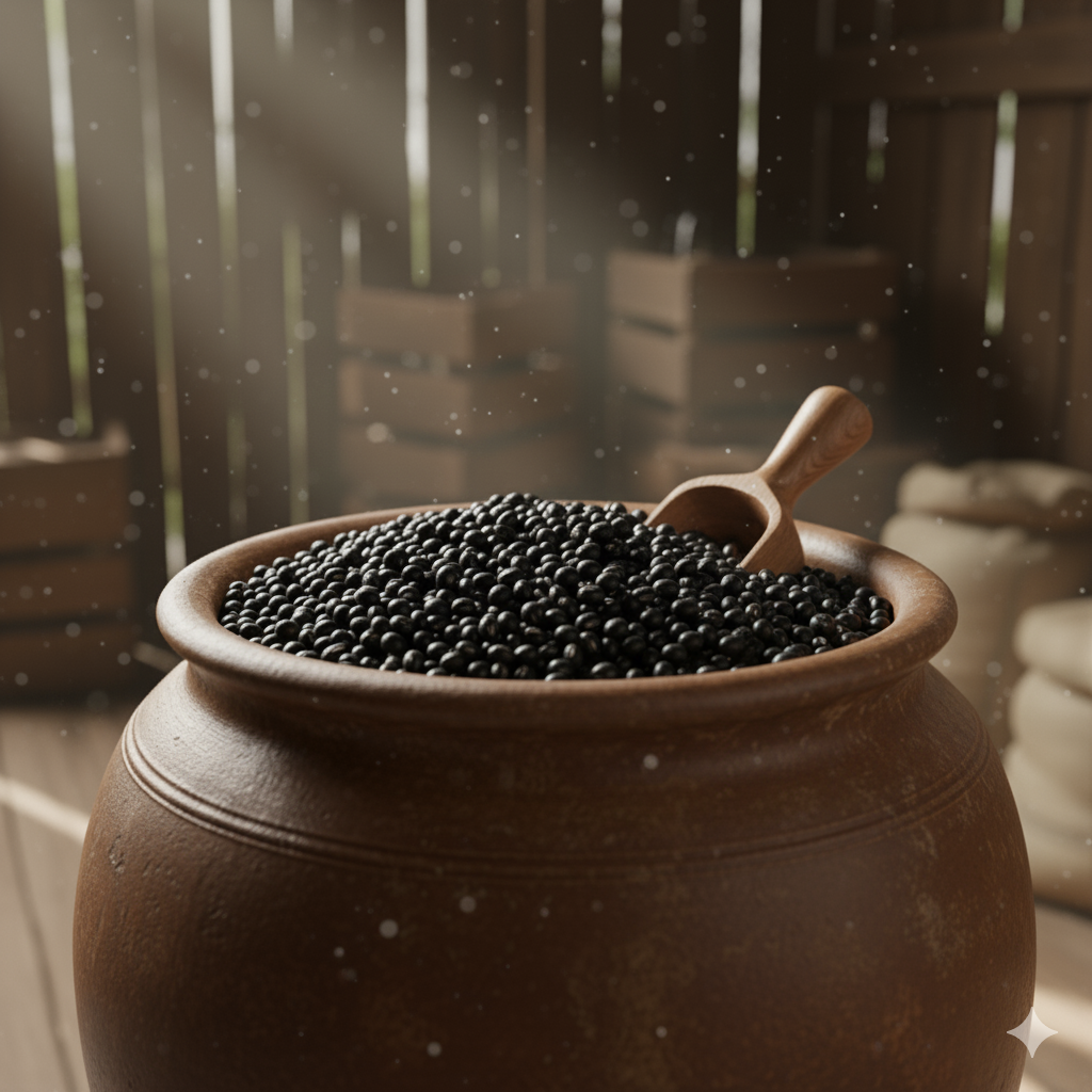 Kedelai hitam pilihan difermentasi selama 2–4 hari untuk menumbuhkan jamur khusus kecap. Proses alami ini menjadi kunci terbentuknya cita rasa dasar yang khas.